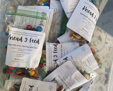 At Knead2Feed, our trail mixes are portable pockets of energy and encouragement. Volunteers come together to measure, mix, and pack each resealable bag with care, turning simple ingredients into something that feels like a boost from a friend.